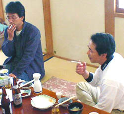 ![]() 今回、男性3名・・・真中がアタクシ 入部です。そして右が俊ちゃん 3人とも飲みすぎで、この後頭痛 |